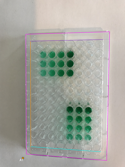 - Wells area boundary: four lines (canonical orientation - the plate is shown upright, with column 1 on the left and row A at the top)