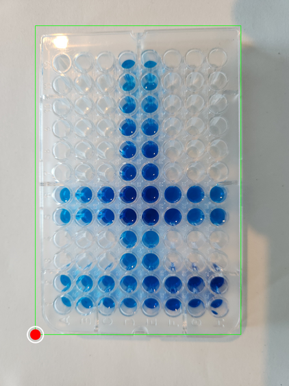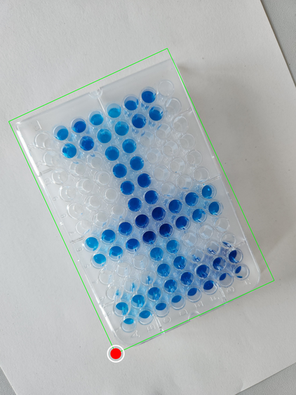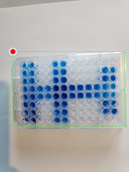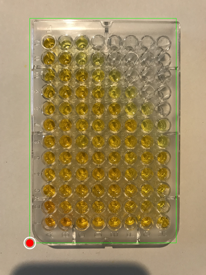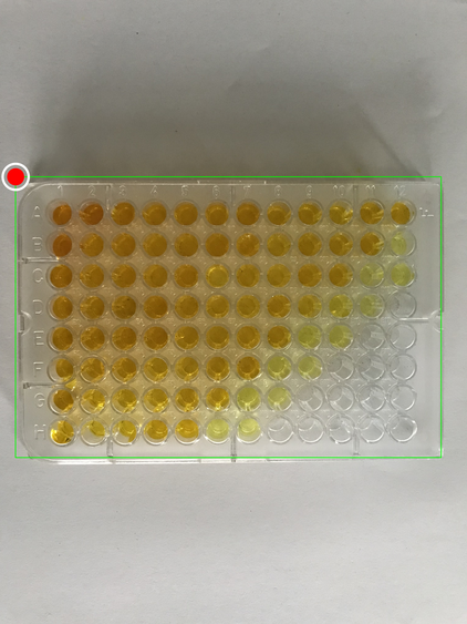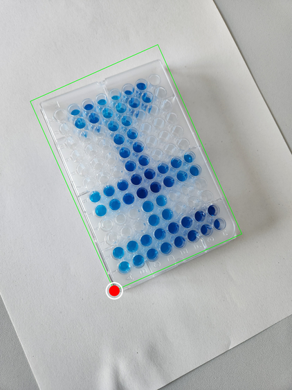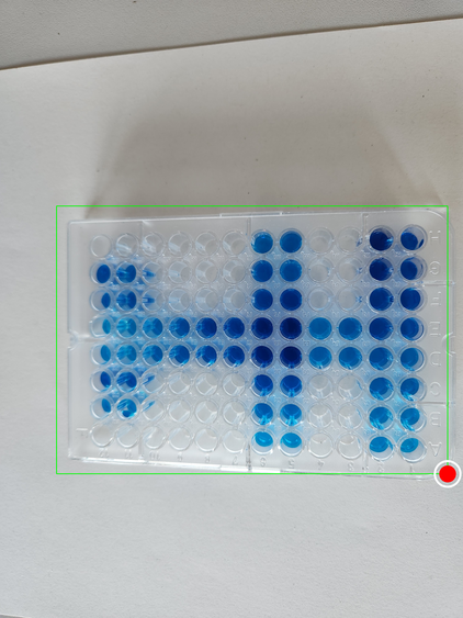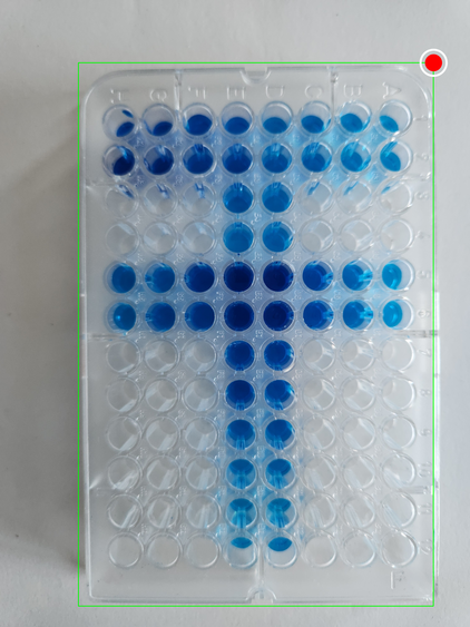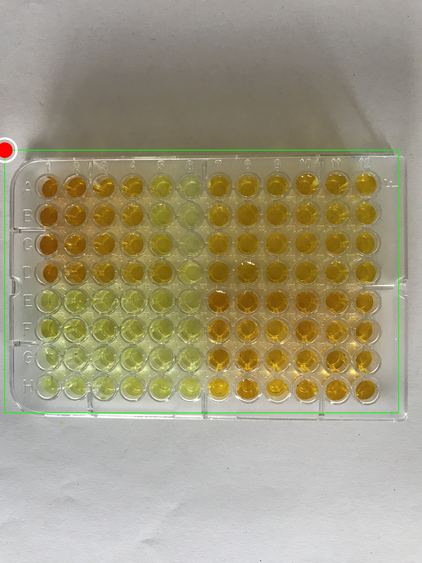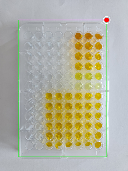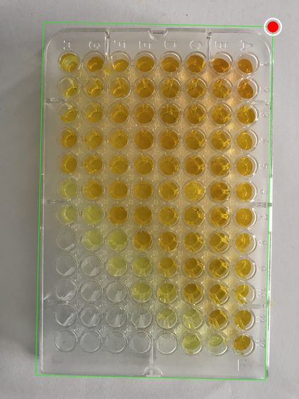 The system identifies plate orientation and marks the corner nearest A1 with a red marker, ready for downstream analysis.