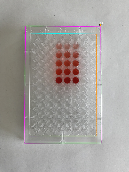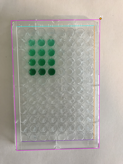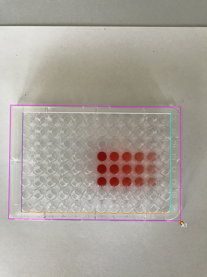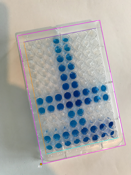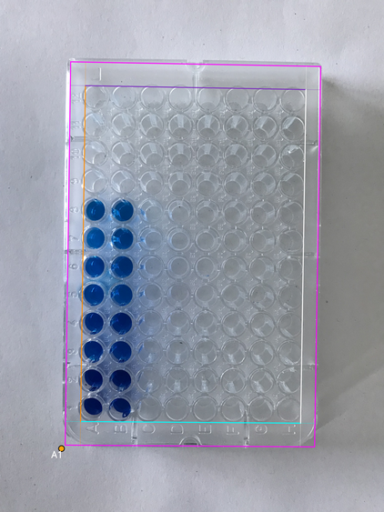 - Wells area boundary: four lines (canonical orientation - the plate is shown upright, with column 1 on the left and row A at the top)